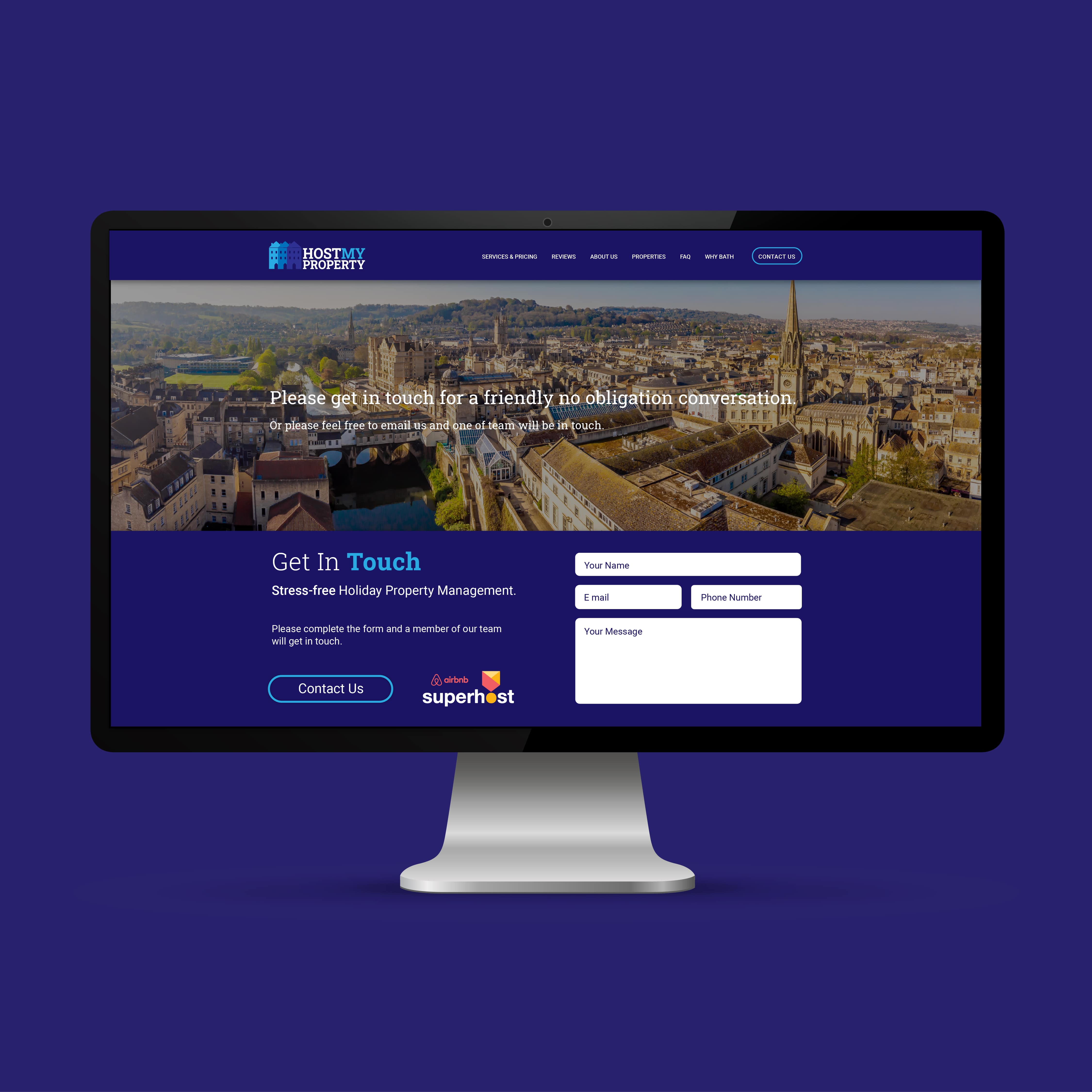 We were commissioned by Dan Daly the founder of Host my Property to rebrand the business, with a new logo and property portfolio website. Host My Property is a property management company based in Bath, Wiltshire. The company has been around for a few years, but Dan felt that the online presence of the company needed a refresh and the website needed a modern re-boot. The request was to create a more modern feel to attract tourists and visitors to use their properties when visiting the city of Bath. We looked at the branding first, changing the font and colours, he wanted to look traditional and modern at the same time. We wanted to keep a reference to bath by including the Georgian townhouses in the final design. We develop a series of concepts to choose from and developed a new set of brand colours and fonts. The website we designed and developed took the form of a web app, and we built an admin section with the ability to upload information and images about the apartments. The Web app links directly to Air BNB where customers can finalise bookings.